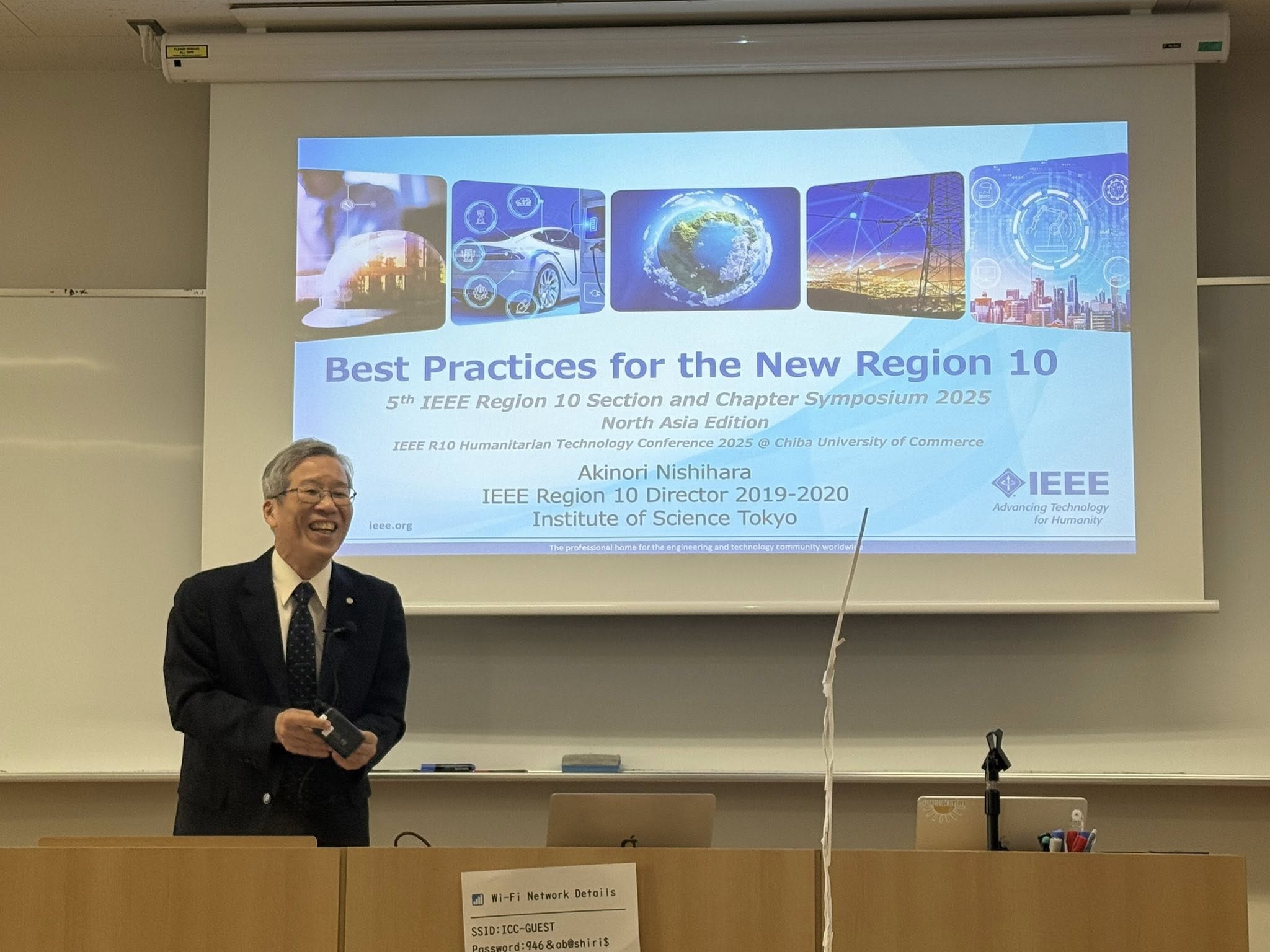 Prof. Nishihara attended IEEE Region 10 Humanitarian Technology Conference 2025 held at Chiba University of Commerce from 28 September to 1 October. The first R10 HTC was held in 2013 in Sendai, Japan, and this was the second HTC in Japan. Prof. Nishihara had a talk in a pre-event, attended many sessions, served as a time-keeper, and helped as a receptionist of the Banquet.